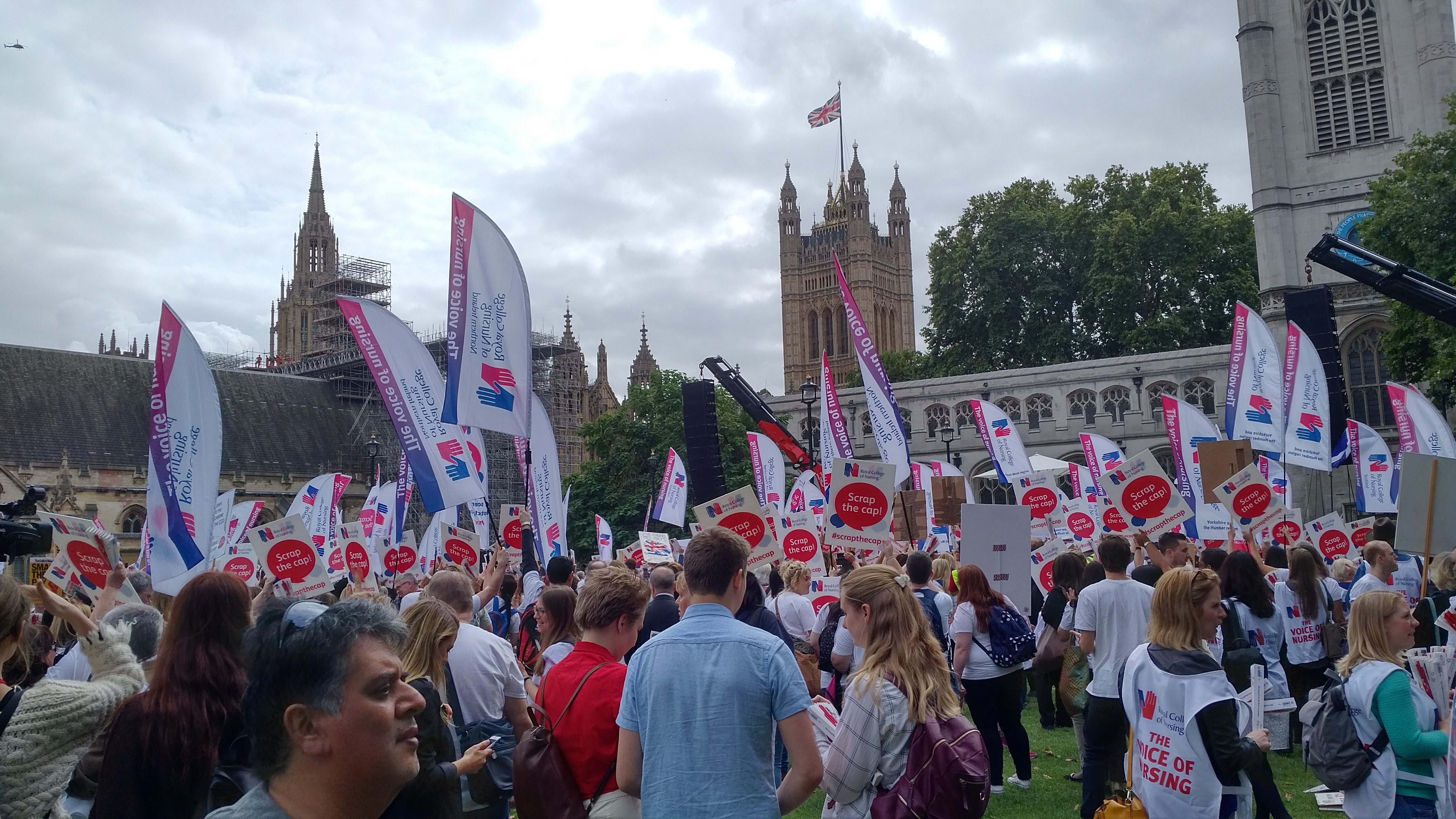 This afternoon I attended the Royal College of Nursing’s rally outside Parliament to drop the cap on public sector wages. It was one of the better organised rallies I have attended and, despite the non-partisan nature of the college, lots of leading Labour figures were there.