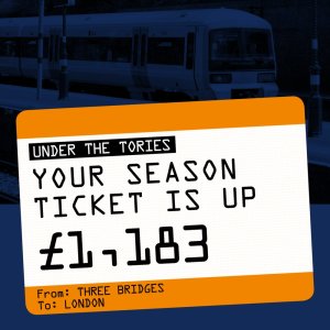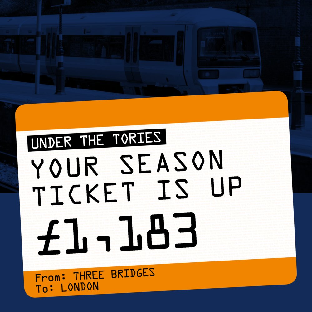 This week the Government confirmed fares will be going up again in five months time, bringing the total cost of a Three Bridges to London season ticket up to £3,987. This means that ticket prices will have increased by 42% under the Conservatives, a whopping £1,183, far outpacing inflation.