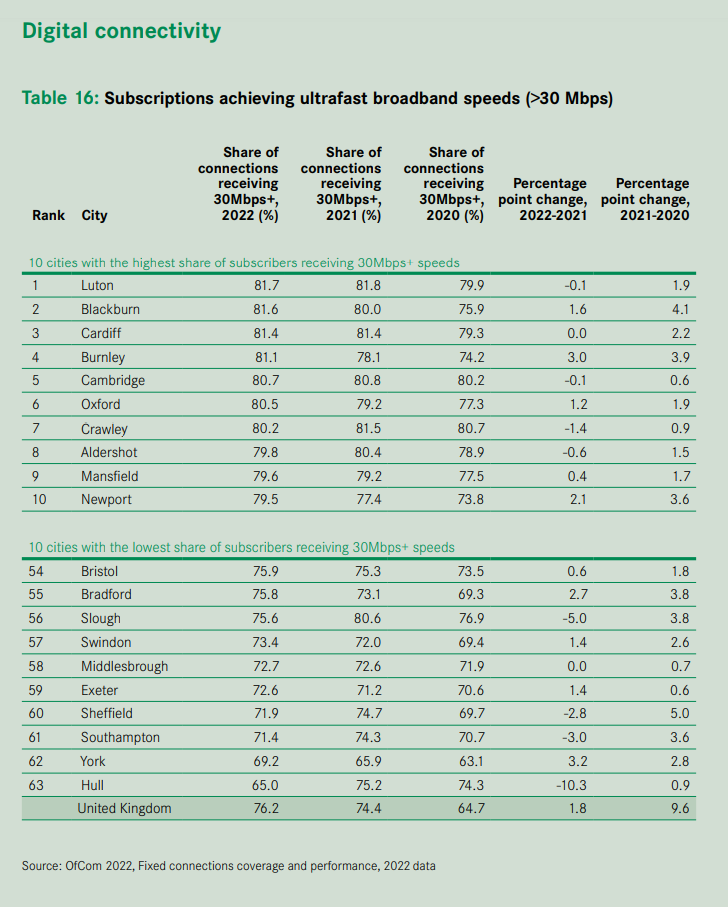 However, if you look at the figures, you can see that the actual percentage of properties with fast speeds has declined over the last year. How has this happened? Well in lieu of companies going in and yanking up fibre/copper cables, the difference must stem from new houses, which brings us to the last interesting part of the report.