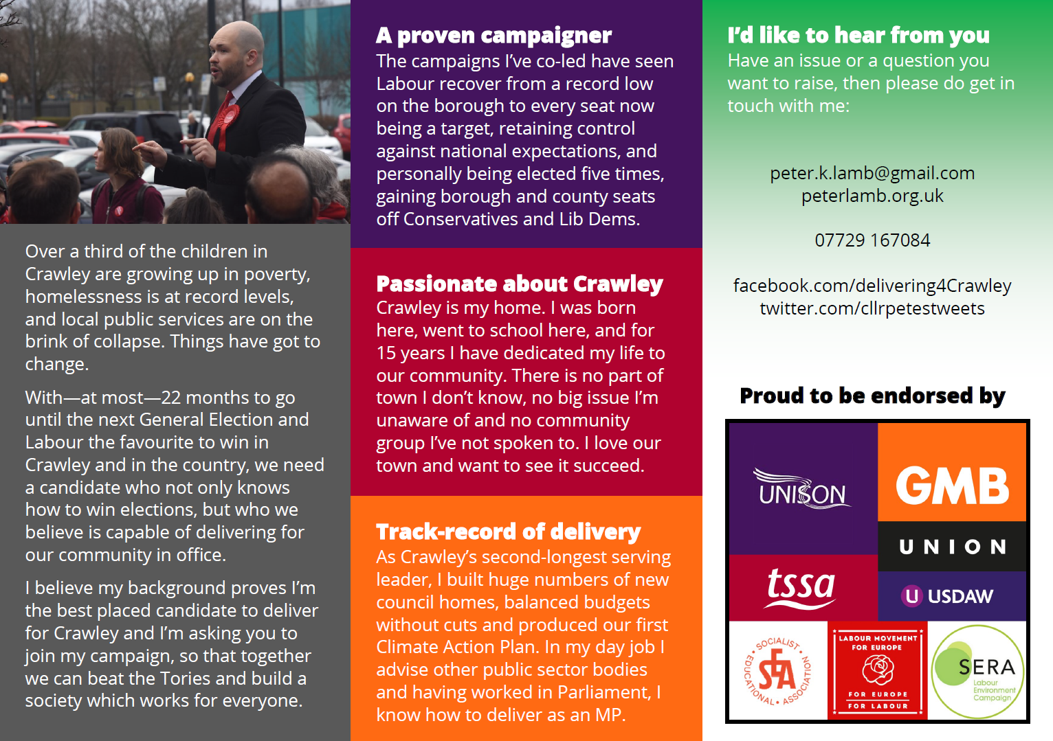 Because we don’t get access to membership lists until after shortlisting, I haven’t been able to reach out to members in the way I would have liked to. Despite this, I have produced the leaflet below to set out a bit more about me and why I’m running, please do give it a read (a high-res version for sharing can be found here).