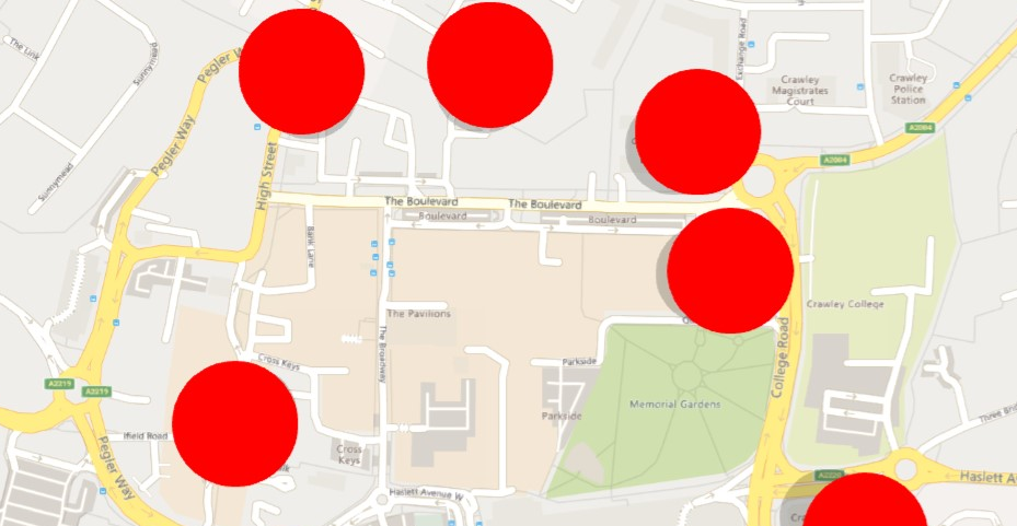 The other location with a general lack of CBC land is the town centre. There’s the Town Hall, Crawley Museum, an access road behind Northgate Road, Kilnmead Car Park and the Ancient Priors, but the council owns none of the retail locations nor any of the public realm, most of which belongs to West Sussex Highways having once been navigable by car.
