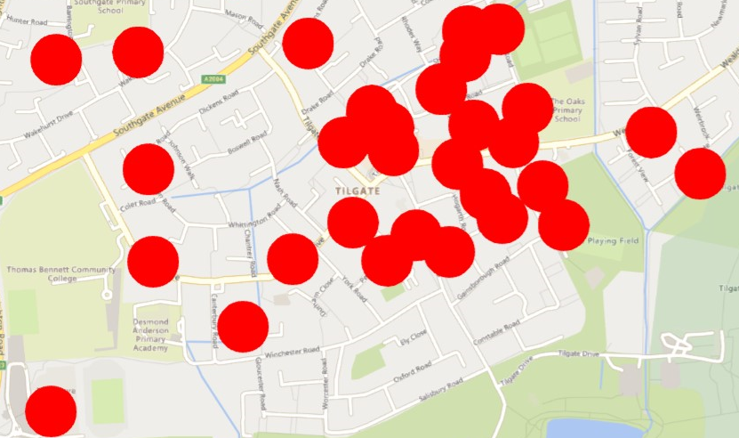 With 838 data points (each highlighting a postcode, rather than showing the full size of the site), going through one by one would quickly get boring, but there are a few things which are interesting to note.