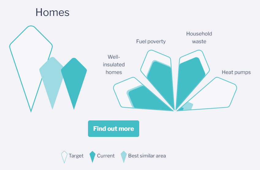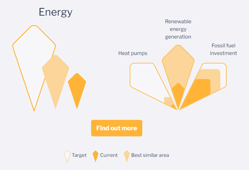 Meanwhile, the town’s worst area of performance is around energy, with renewable energy generation being the metric which really sets the town back compared to its statistical comparators.