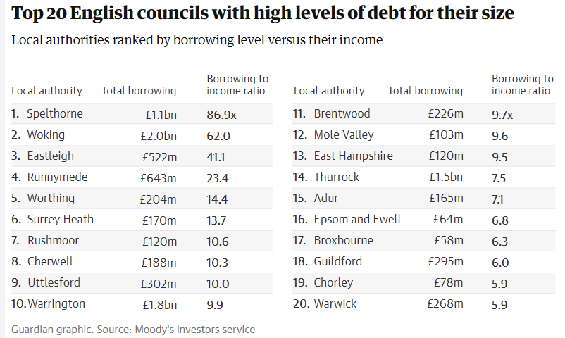 There are several explanations for this. The first is that other than Watford, which ranks lower on renewable energy generation than Crawley, the other councils all have large rural hinterlands available for creating wind and solar energy generation. The second is that while Thurrock has on paper hit their target for renewables generation, given what we now know about the level of fraud involved in their solar farm investments, who knows what their actual figures really are.