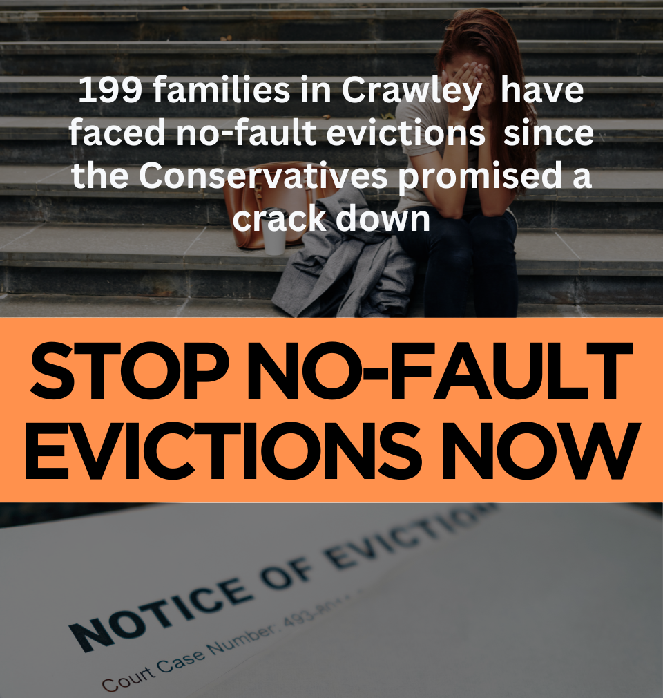 New analysis from Crawley Labour reveals the cost of Conservative inaction on ‘no-fault’ evictions as 199 local families have faced proceedings to eject them from their home in the years since the Tories promised to ban the practice in April 2019.