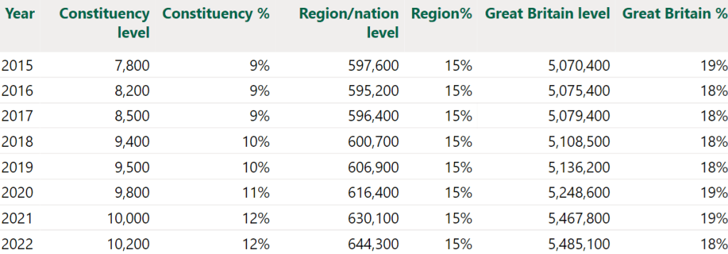 To be fair, they do say that the constituency figures might not be accurate from one year to the next, but overall there appears to have been an increase of almost 50% in the size of the public sector workforce throughout austerity from 2015 to 2022.