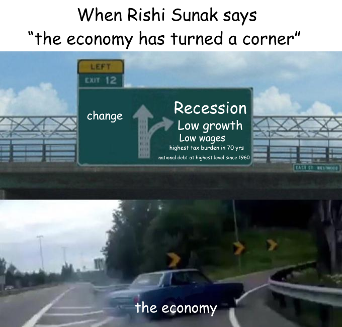 GDP per capita, the amount of money made by the UK economy per person, had already been falling since the start of 2022–the longest sustained period of stagnation since the 1950s, but yesterday revised GDP per capita projectsions down for the next four years. This means that the economy is in an even worse state than before Rishi Sunak became Prime Minister.
