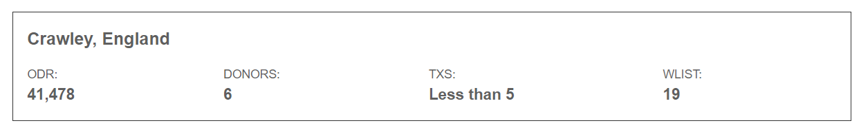 We currently have more people donating organs than receiving transplants within the town, but despite this there are far more on our waiting list waiting for the organ they despierately need.