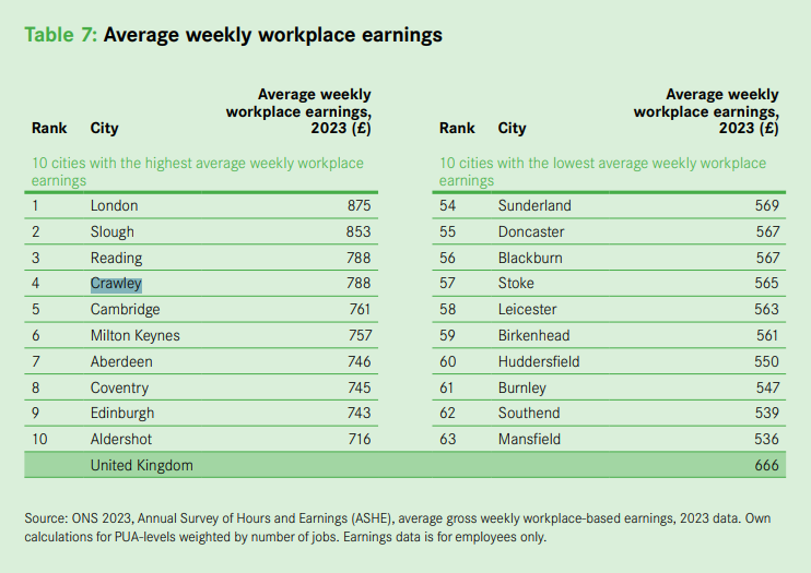 This often comes as a surprise for people, as the average weekly earlings paid within the constituency are actually one of the highest in the country, but the explanation for the apparent mis-match is simple enough.